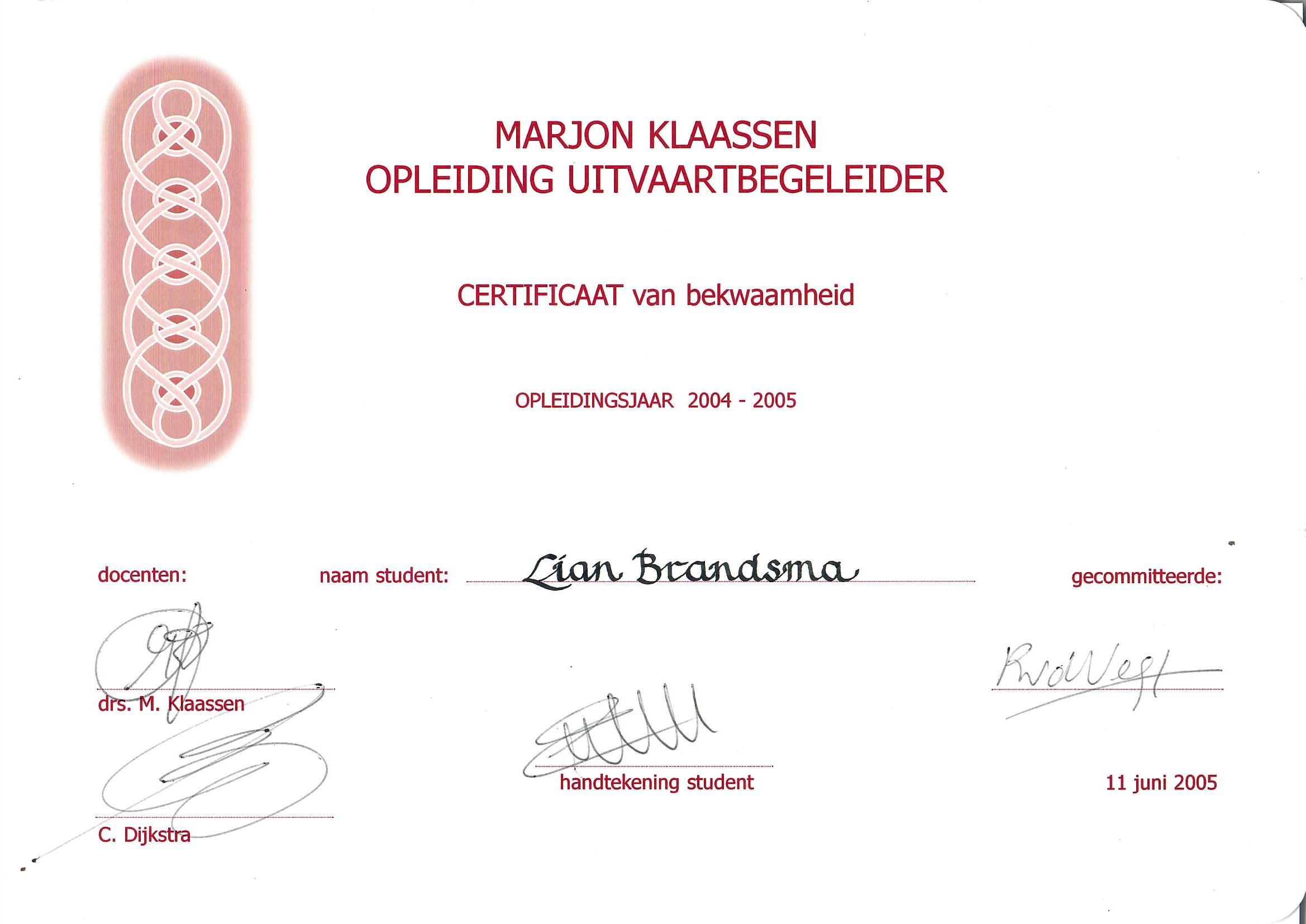 Ik ben inmiddels gecertificeerd uitvaartbegeleider.